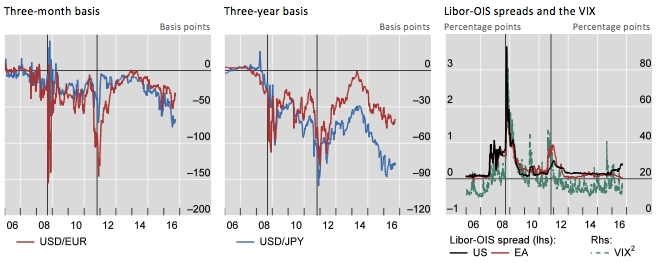 Covered interest parity is very different from these trades. It has an arbitrage condition that is guaranteed to hold true by the maturity of the securities in question which is very short in practice (1w, 1m, 1y all provide opportunity). It’s true that the position could generate margin calls for levered players (hedge funds) if spreads widened. For unlevered investors just trying to enhance cash yields or banks without these leverage constraints the trade is riskless. As long as your counterparties can make good, the trade is the same as investing in CD, but with a higher yield than a domestic currency CD. Let me know where I am going wrong here.